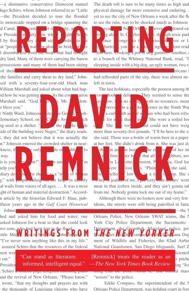 David Remnick is a writer with a rare gift for making readers understand the hearts and minds of our public figures. Whether it’s the decline and fall of Mike Tyson, Al Gore’s struggle to move forward after his loss in the 2000 election, or Vladimir Putin dealing with Gorbachev’s legacy, Remnick brings his subjects to life with extraordinary clarity and depth. In Reporting, he gives us his best writing from the past fifteen years, ranging from American politics and culture to post-Soviet Russia to the Middle East conflict; from Tony Blair grappling with Iraq, to Philip Roth making sense of America’s past, to the rise of Hamas in Palestine. Both intimate and deeply informed by history, Reporting is an exciting and panoramic portrait of our times.
